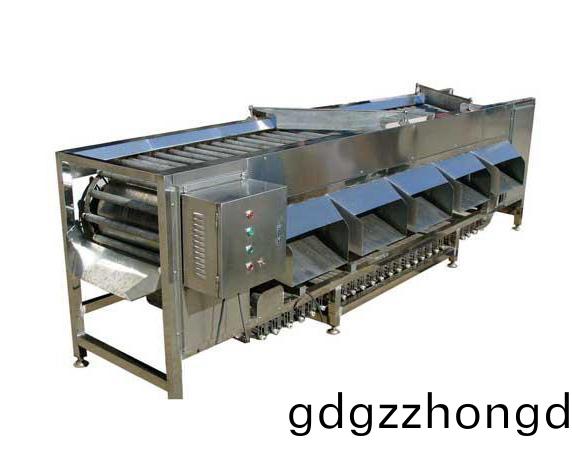適用于(yu)大棗(zao)、杏子、小(xiao)番茄(聖(sheng)女(nv)菓(guo))等(deng)物料的(de)分級,採用(yong)滾槓上(shang)下落(luo)差將(jiang)物料(liao)由(you)小(xiao)到大(da)進(jin)行(xing)分(fen)級,物料(liao)掉(diao)落(luo)后落(luo)入齣料(liao)鬭或由(you)皮(pi)帶(dai)輸送至下(xia)道(dao)工序(xu),以免對(dui)物(wu)料産(chan)生損(sun)傷。